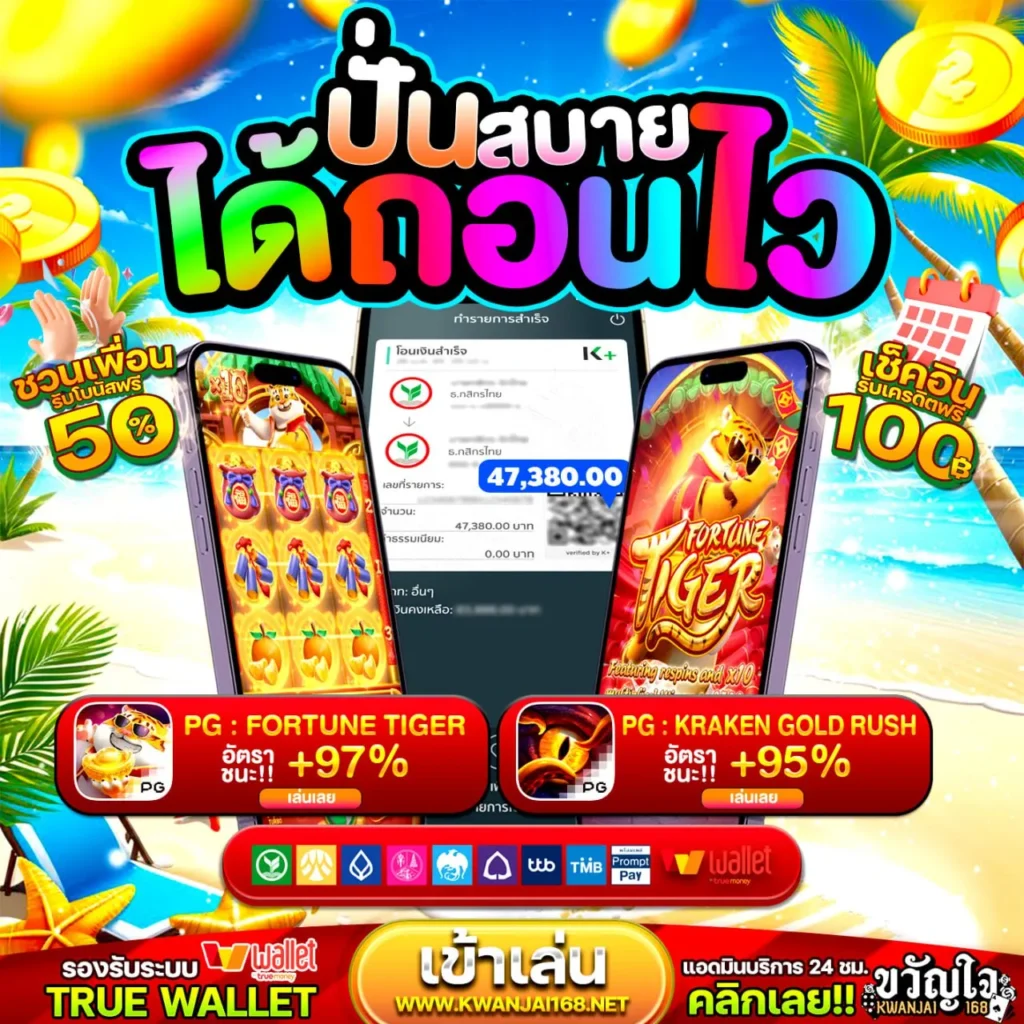 ขวัญใจ168 ทุนไม่เยอะก็แตกได้ สมัครใหม่กับ Kwanjai168 รับเพิ่ม 50% พร้อมลุยทุกค่ายดัง