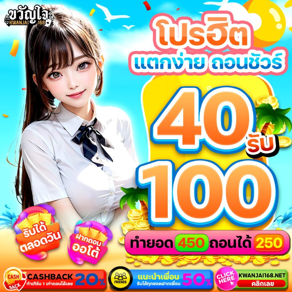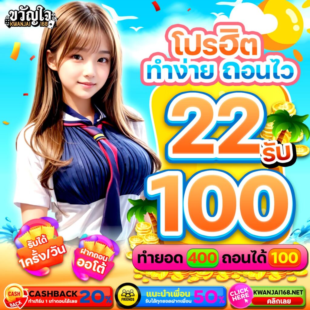 ฝาก20 รับ100 ทํา ยอด 300 ถอนได้ 300 เมื่อพูดถึง เว็บสล็อตออนไลน์ ที่ได้รับความนิยมสูงสุดในประเทศไทย เว็บสล็อตขวัญใจ168 เป็นหนึ่งในตัวเลือกอันดับต้น ๆ ที่นักเดิมพันให้ความสนใจมากที่สุด เว็บสล็อตขวัญใจ168 ด้วยความหลากหลายของเกมสล็อต โปรโมชั่นที่คุ้มค่า และระบบที่ทันสมัย ทำให้ผู้เล่นสามารถเพลิดเพลินไปกับประสบการณ์การเดิมพันที่ดีที่สุด หนึ่งในโปรโมชั่นที่ได้รับความนิยมมากที่สุดของ ขวัญใจ168 คือ ฝาก20รับ100 ซึ่งเป็นโปรโมชั่นสุดคุ้มที่ช่วยเพิ่มโอกาสให้ผู้เล่นสามารถทำกำไรจากเกมสล็อตได้มากขึ้นโดยใช้เงินทุนเพียงเล็กน้อย